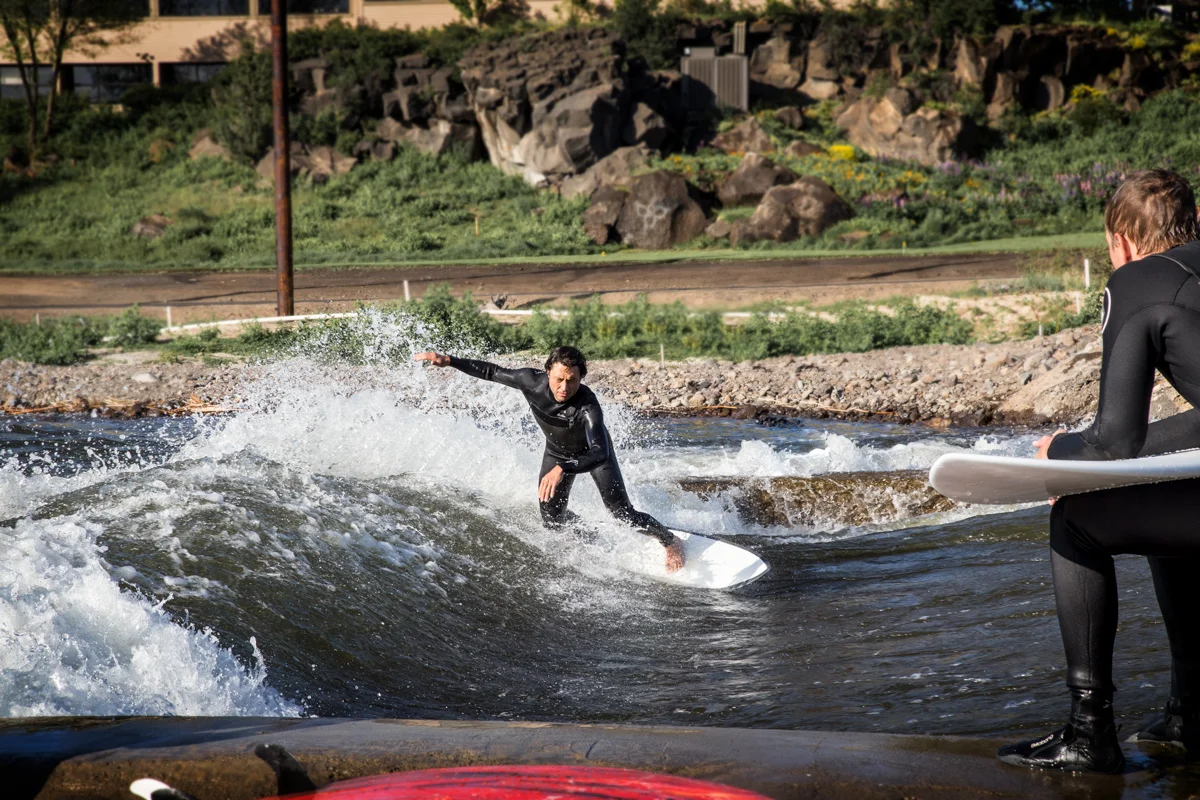 I also got some time on the river to see the newly installed river wave on the Deschutes river running through downtown Bend and see some of the riverboards Travis has shaped in action.
